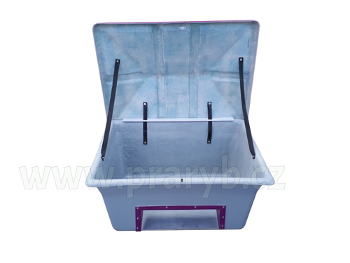 Nádoba na posypový materiál o objemu 300 l, s bočním otvorem pro jednodužší manipulaci s posypovým materiálem.