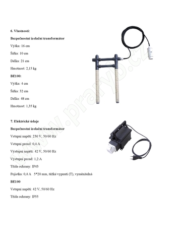 Montáž: Bezpečnostní izolační transformátor musí být umístěn nebo namontován na chráněném, suchém místě.